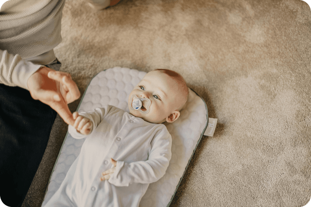 When a baby rolls over, they’re learning to use their whole body — head, shoulders, core, and hips. This stage supports:
