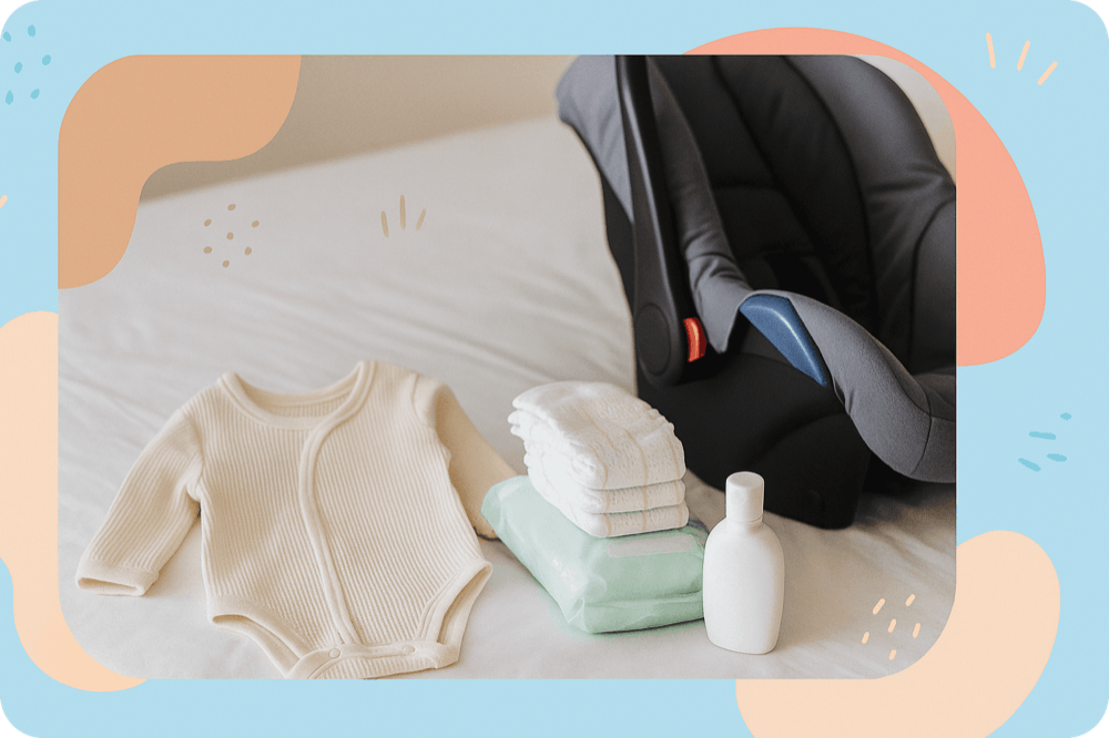 It’s best to get everything ready for discharge in advance. Season-appropriate clothes, a Group 0+ car seat, diapers, alcohol-free wipes, and diaper cream. Formula only if recommended by your doctor. At home, prepare a space for sleeping, changing, and basic care.