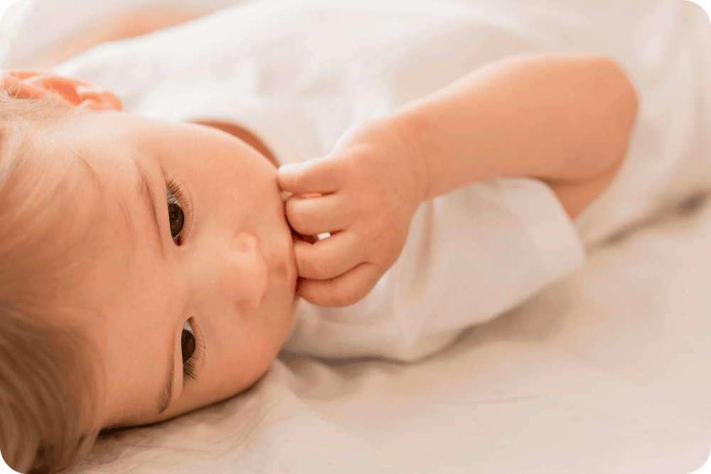 - Soothing during teething: massaging gums instinctively relieves discomfort
